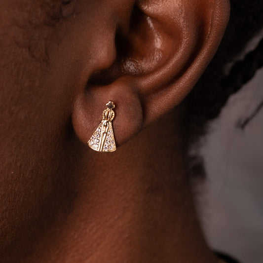Ohrringe Unsere Liebe Frau von Aparecida mit Zirkonien, vergoldet mit 18 Karat Gold