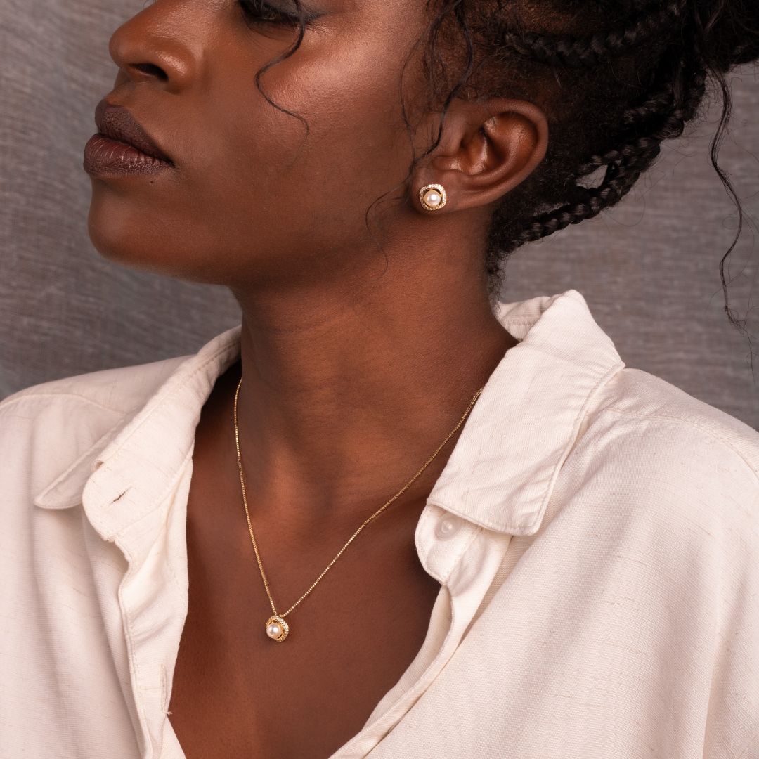 Die Perlenohrringe mit Zirkonia sind die Definition zeitloser Eleganz. Mit einer wunderschönen zentralen Perle besticht das Design durch eine Fassung aus Zirkonia-Steinen, die dem Schmuckstück Glanz und Raffinesse verleiht.